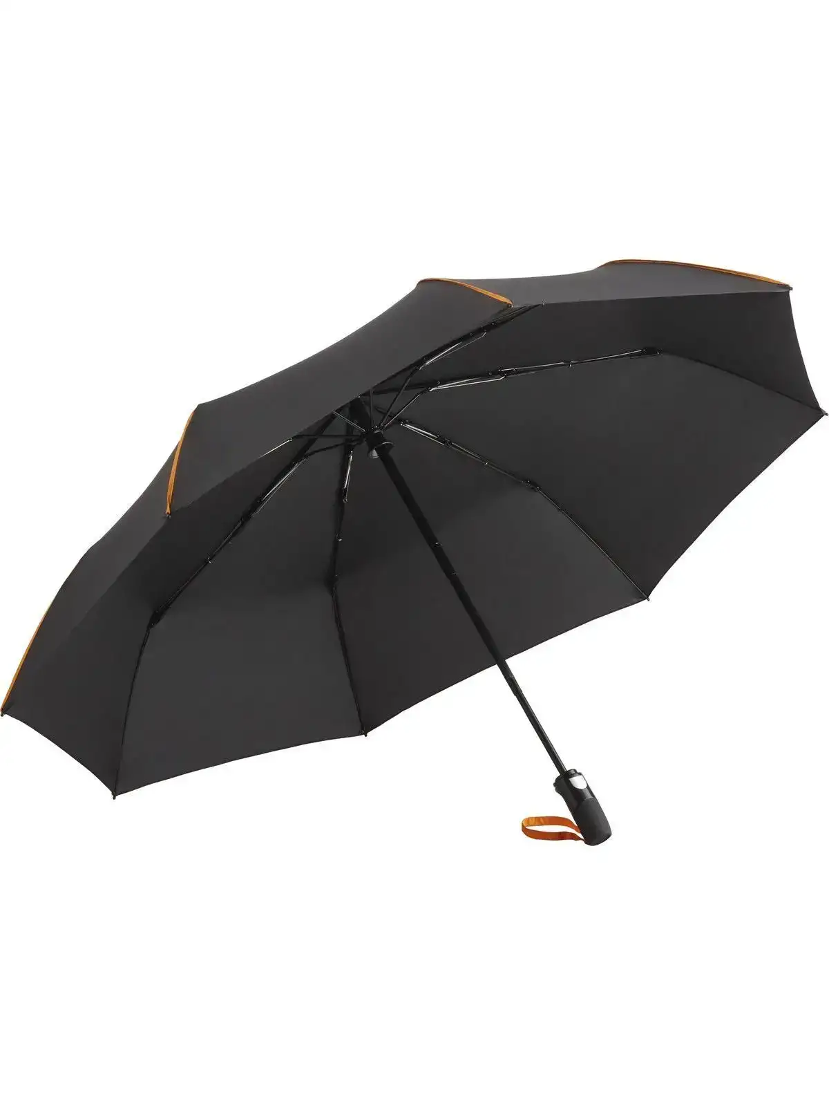 Copertura: 100% poliestere pongee, manico: plastica, asta: acciaio. Ombrello con meccanismo automatico di apertura/chiusura, sistema antivento per la massima flessibilit�� del telaio in caso di temporali, pannelli con strisce di colore contrastante, manico opaco/lucido con pulsante integrato e cinturino colorato, opzione di etichettatura promozionale. Diametro: 104 cm, lunghezza da chiuso: 31,80 cm, 8 pannelli.