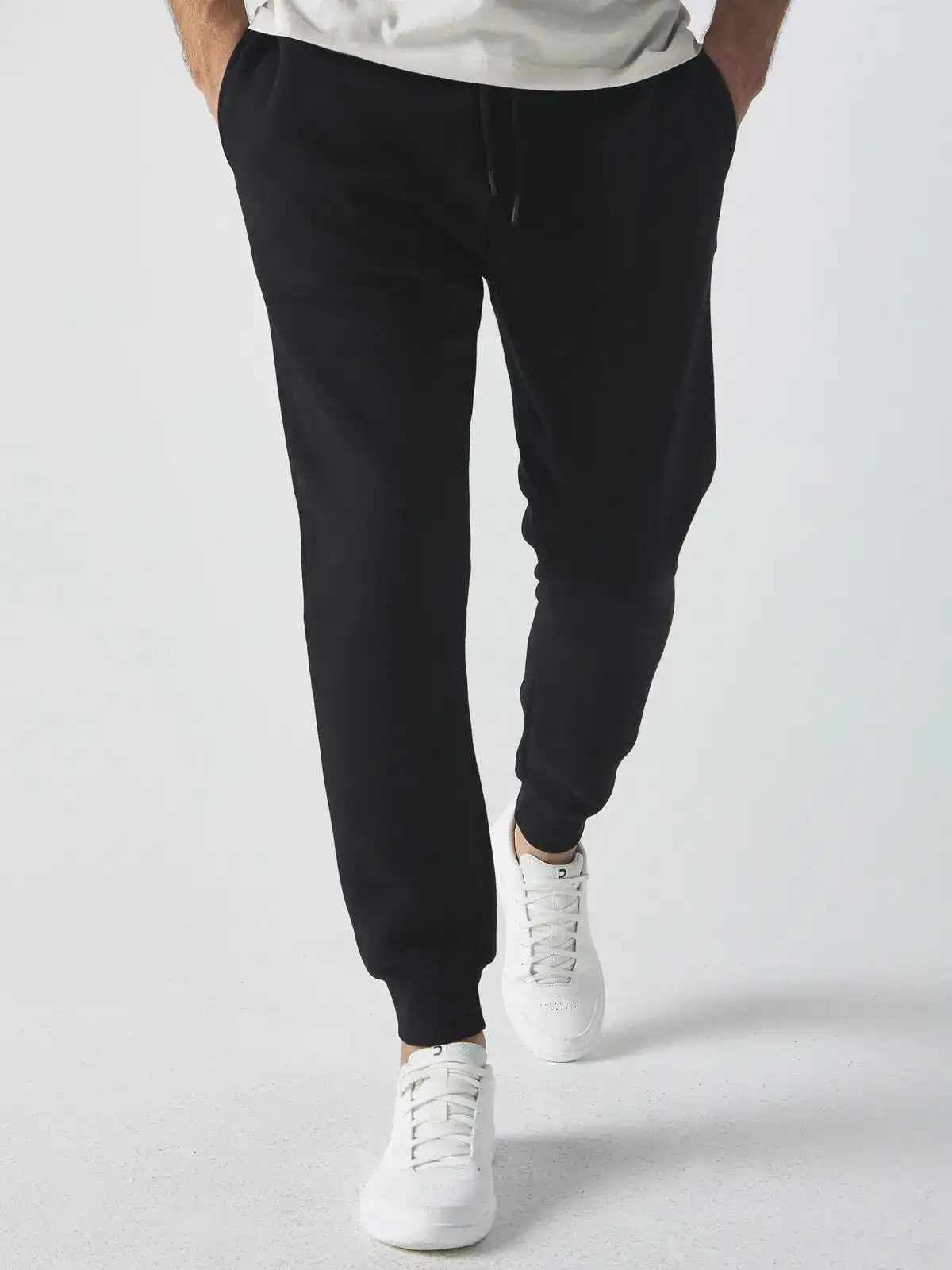 70% cotone pettinato, 30% poliestere. Tessuto interno in poliestere ed esterno 100% cotone. Pantaloni felpati internamente, tasche a filetto dello stesso tessuto, tasca posteriore con toppa, cordoncino in tinta con estremit�� in plastica. Etichetta strappabile.