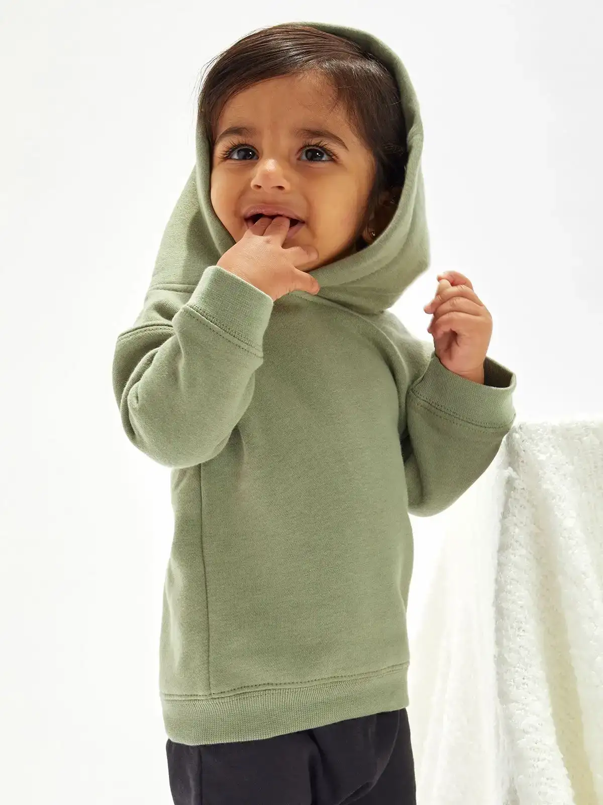 80% cotone (organico o in conversione), 20% poliestere riciclato, 280 g/m2. Felpa da neonato con cappuccio doppio strato, interno felpato, nastro di rinforzo al collo a contrasto. Polsini e orlo a costine. Etichetta taglia removibile sul collo. Etichetta con istruzioni di lavaggio in cotone organico.