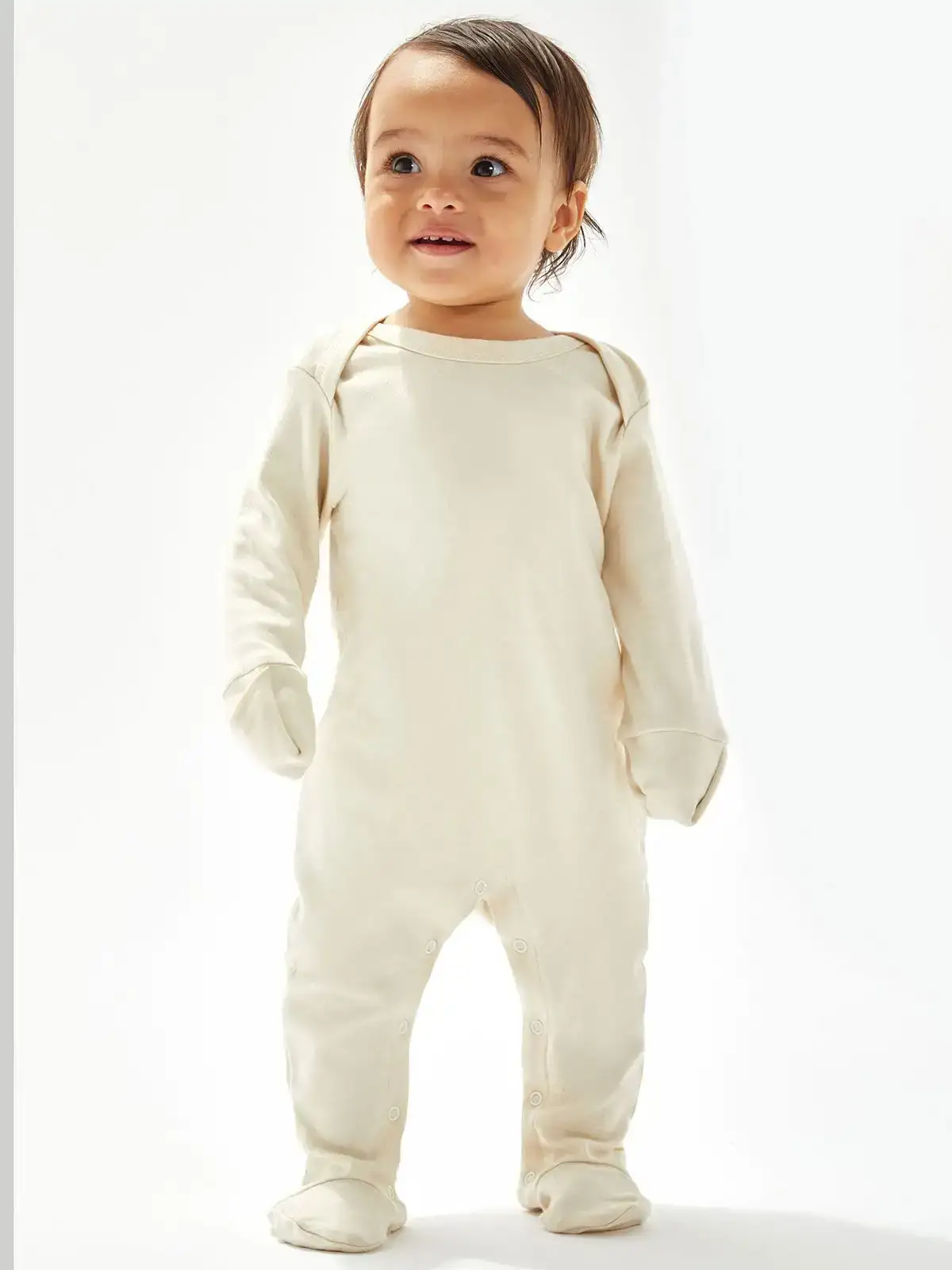 100% cotone organico certificato. Body a manica lunga set-in con piedini integrati, etichetta strappabile, struttura con cuciture laterali.