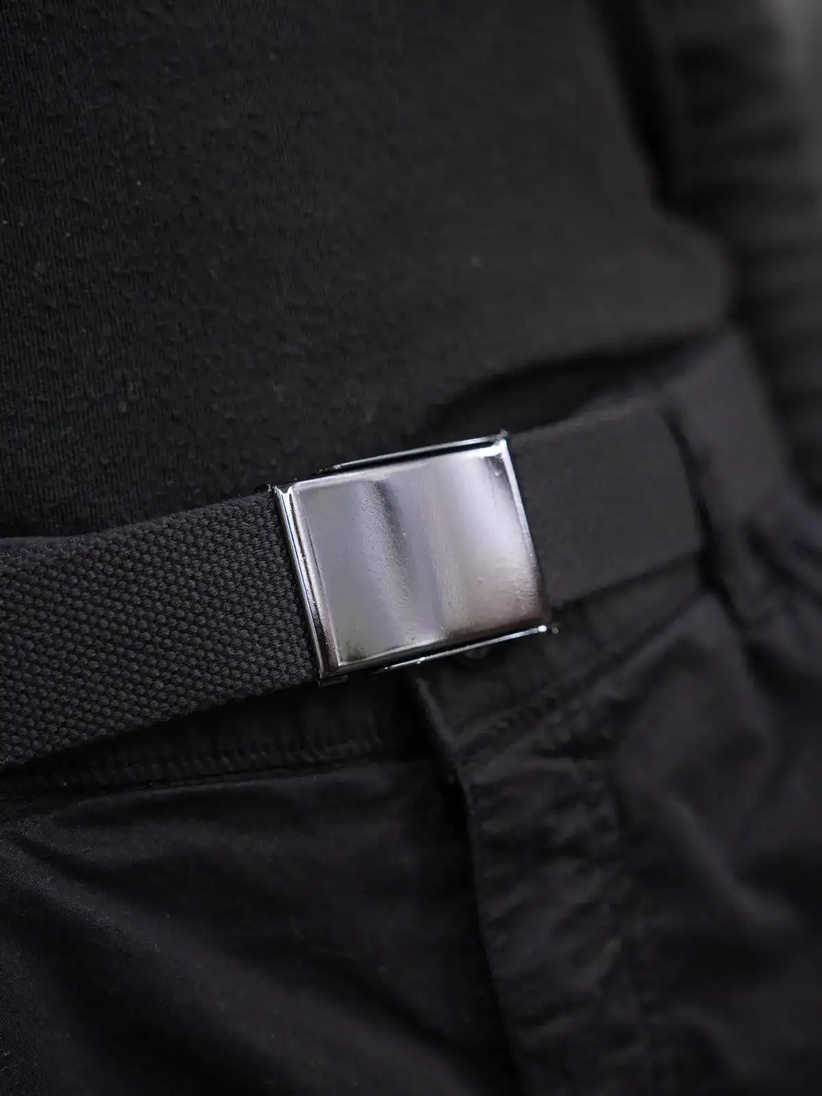 100% poliestere. Cintura in poliestere con fibbia in ferro laccata e priva di nichel. Comoda da indossare grazie al 100% di poliestere.Taglia unica con chiusura a patta.Lunghezza regolabile dalla XS alla 3XL (130 cm).