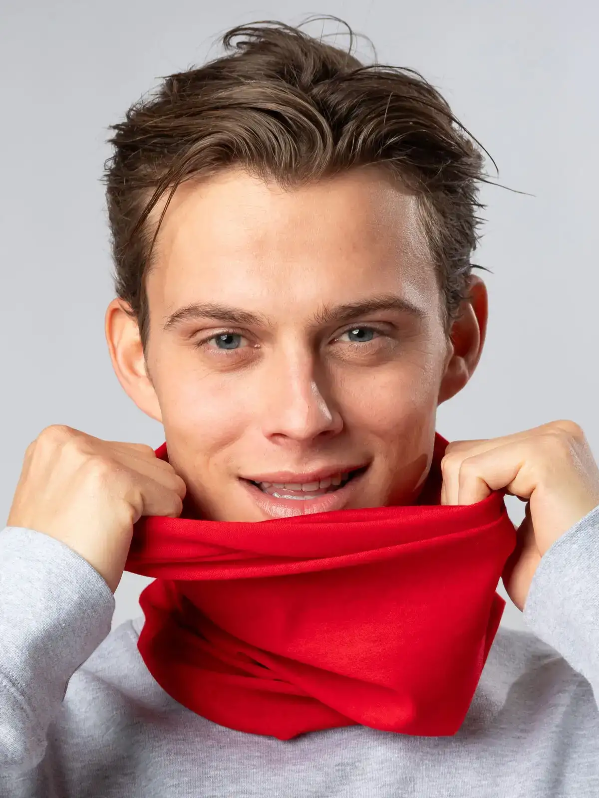 100% poliestere. Tubulare multifunzione in tessuto seameless elasticizzato. Dimensioni: 50 x 25 cm. Nessuna etichetta, sticker nella polybag.
