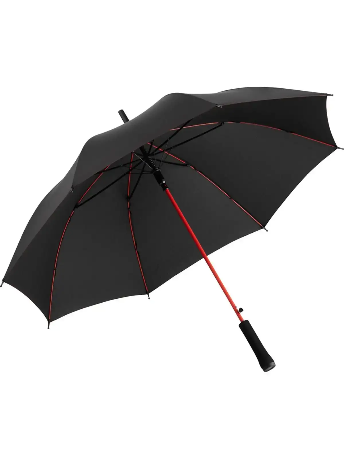 Ombrello bastone con funzione automatica per una apertura rapida. Struttura antivento per una maggiore flessibilit�� e stabilit�� in condizioni ventose. Stecche flessibili in fibra di vetro. Robusto fusto in acciaio con manicotto colorato, manicotto colorato, materiale in poliestere pongee certificato Standard 100 by OEKO TEX in plastica riciclata. Ecologico grazie al rivestimento waterSAVE, sottile decorazione del rivestimento grazie alle cuciture colorate, esclusiva impugnatura morbida con doppia possiblit�� di personalizzazione. Anche il pulsante di apertura ha la possibilit�� di essere personalizzato. Diametro: 105 cm, lunghezza da chiuso: 83 cm, 8 pannelli.