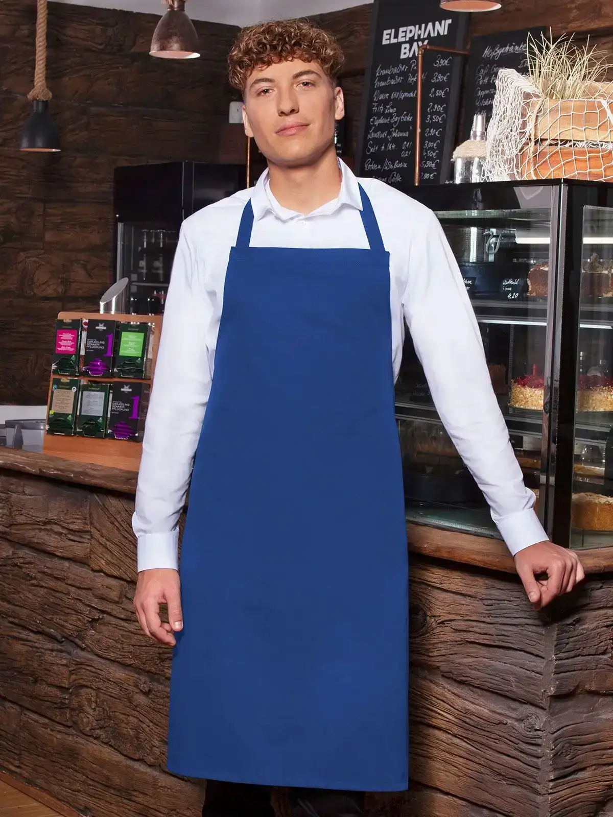 65% poliestere, 35% cotone. Grembiule con pettorina Basic. 215 g/m�?, grembiule con pettorina con cinta nello stesso, cuciture rinforzate, con fascetta al collo di c.ca 60cm. Lavabile a 60��C. Taglia unica. Dimensioni: 75 x 100 cm (larghezza x lunghezza).