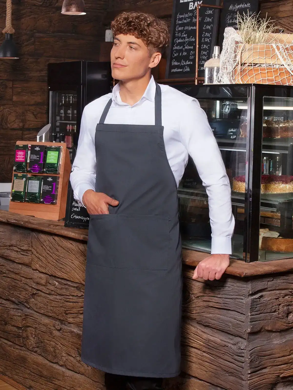 65% poliestere, 35% cotone. "Grembiule Denmark , cotone twill, 215 g/m�? - tessuto rifinito, irrestringibile, lavabile, pratico - grembiule con pettorina con cinta dello stesso tessuto del grembiule, con cucitura rinforzata - collo orizzontale 60 cm - tasca cucite con 2 pieghe, 40 x 20 cm - adatto per lavaggi industriali - disponibile in 30 colori - ""Mix and Match"".