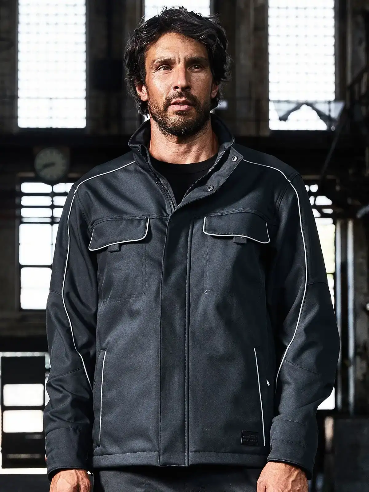 100% poliestere. Giacca in softshell robusta e resistente, interno in pile, antivento e idrorepellente (colonna d'acqua 2,000 mm), traspirante e permeabile al vapore (2,000g/m�?/24h), collo alto, maniche ergonomiche, retro esteso, polsini interno manica, zip interna nascosta con protezione per il mento, tasche laterali con zip e tasche interne, tasche sul petto con cucitura su un solo lato per facilitare la decorazione, tasche interne, dettagli riflettenti (senza funzione protettiva / senza DPI) su tasche, spalle e sul retro, zip YKK. Per evitare che il prodotto si rovini, tutti i bottoni e le zip sono nascosti.